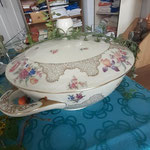 Wir haben viele schöne gebrauchte Dinge bekommen für Haus und Garten. Kleine „Präziosen“ finden Sie auf der Kaffeetafel und schönes Essgeschirr aktuell mit Goldrand auf dem gedeckten Tisch..