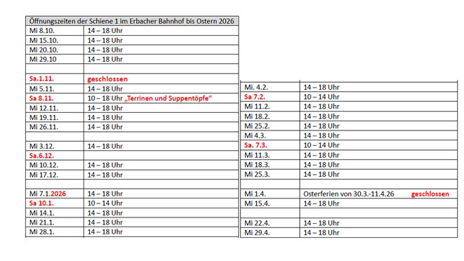 Lassen Sie sich überraschen, was sich in den weihnachtlich dekorierten Räumen in der "Schiene 1" am Bahnhof Erbach alles finden lässt. Wir laden herzlich ein zum
